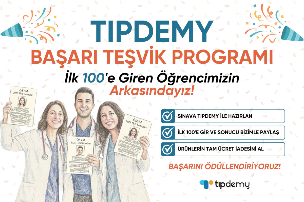 Bu kapsamda, Tıpdemy üzerinden eğitim paketi ve/veya kitap satın alarak sınava giren ve ilk 100 dereceye giren öğrencilerimize, satın aldıkları ürünün ücret iadesini sağlıyoruz.