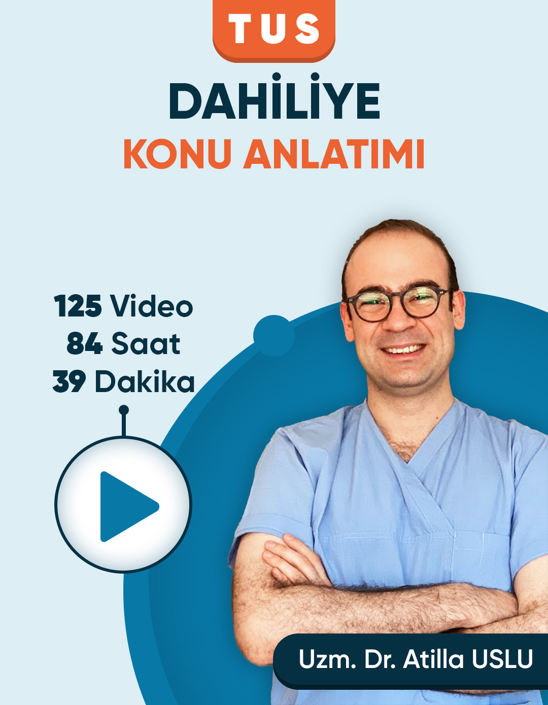 TUS sınavına hazırlanan tıp fakültesi öğrencileri, dahiliye stajına çalışan intörnler ve temel klinik bilgisini sistematik biçimde tazelemek isteyen hekimler için hazırlanan Dahiliye Konu Anlatım Videoları, uzman ve deneyimli hekim Uzm. Dr. Atilla USLU tarafından anlatılmaktadır. Eğitim içeriği; TUS’ta sık sorulan ve klinik pratiğin temelini oluşturan dahiliye konularını sade, anlaşılır ve yüksek verimli bir anlatımla sunar.