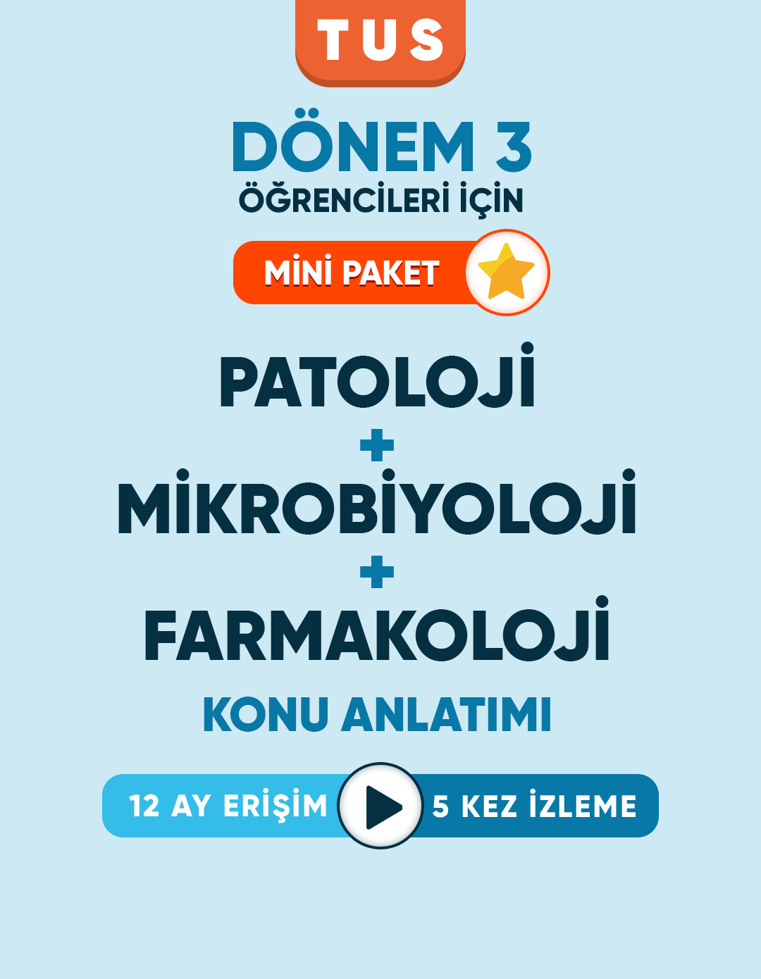 Patoloji + Mikrobiyoloji + Farmakoloji Dönem 3 Seti, temelden ileriye geçiş yapan öğrenciler için hazırlandı. Güncel anlatımlarla 12 ay boyunca 5 izleme hakkı ile döneme ve TUS’a eksiksiz hazırlan!
