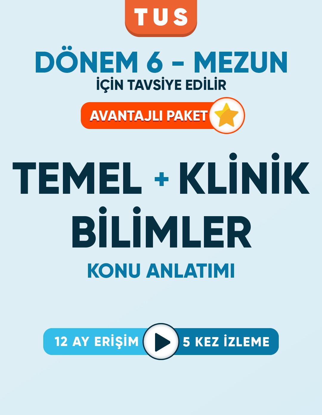 Dönem 6 ve mezunlar için, temel ve klinik bilimlerin tamamını içeren, TUS’a özel hazırlanmış video eğitim setidir. 12 ay erişim ve 5 izleme hakkıyla, eksiksiz bir tekrar süreci seni bekliyor.
