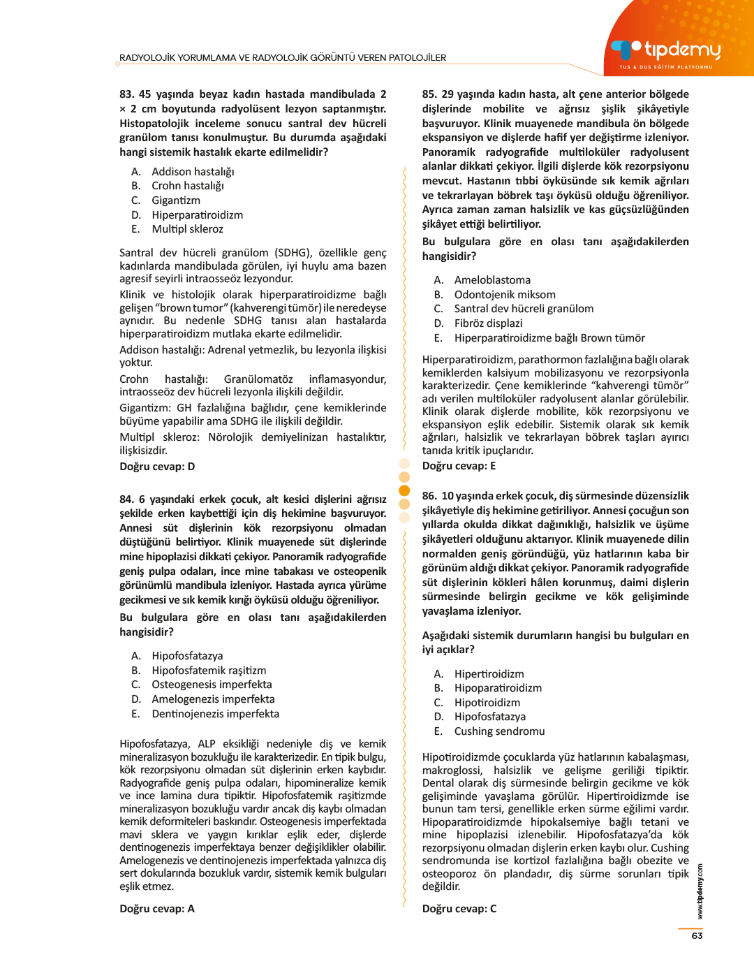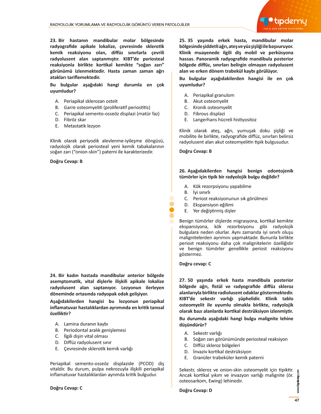 Radyoloji bilgisini soru üzerinden pekiştirmek isteyen adaylar