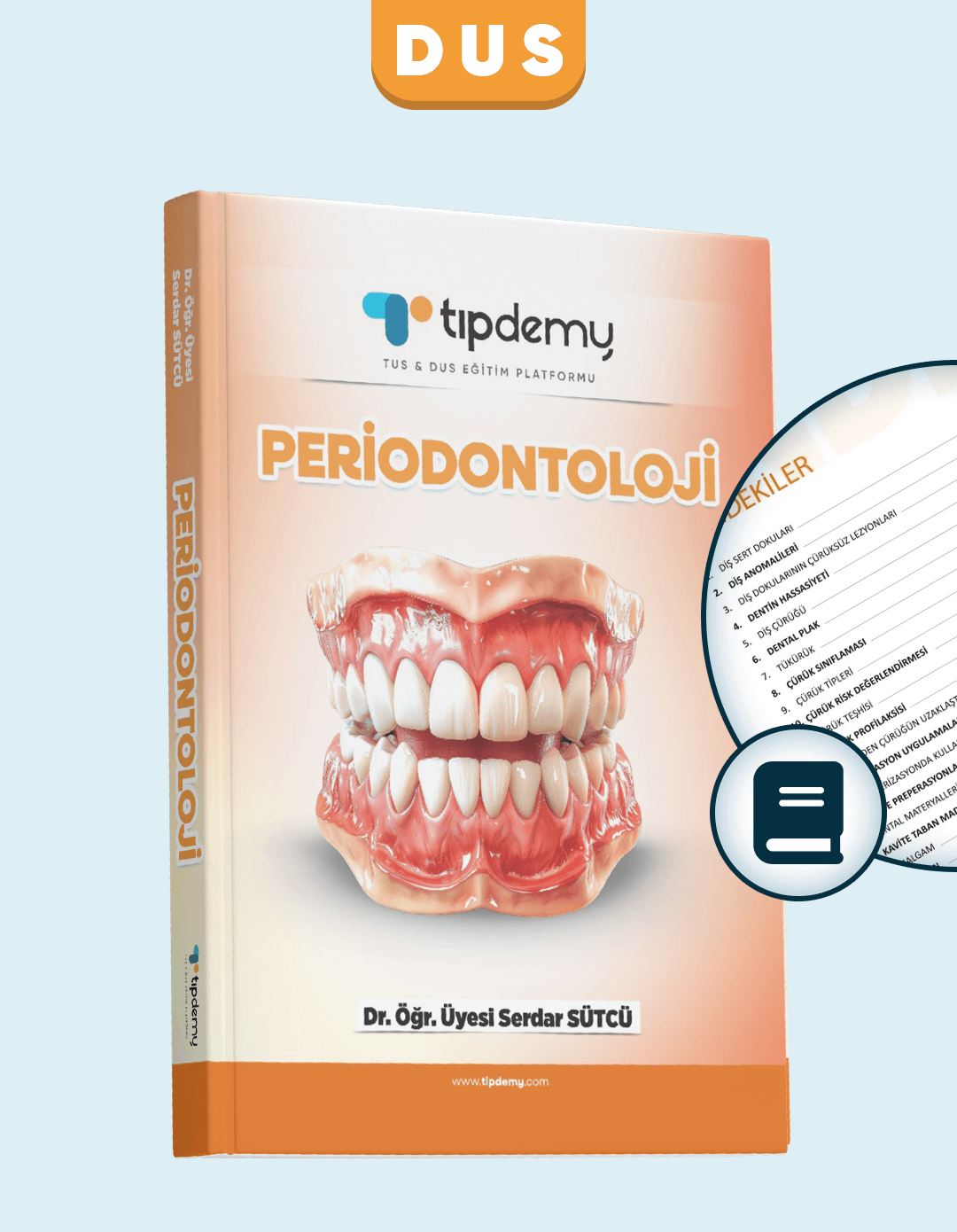 DUS Periodontoloji Konu Kitabı, Dr. Öğr. Üyesi Serdar Sütcü tarafından hazırlanmış, 376 sayfalık kapsamlı ve sınav odaklı bir kaynaktır.