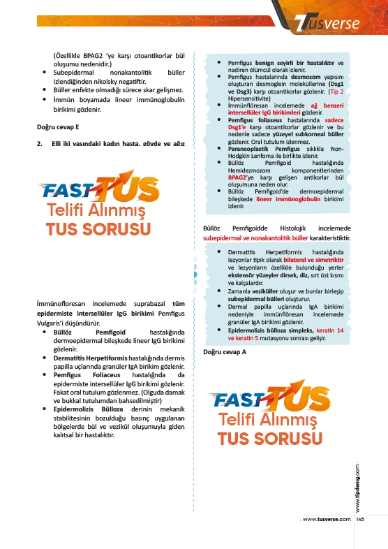 2019–2025 TUS Patoloji orijinal soruları ve açıklamaları, basılı formatta.